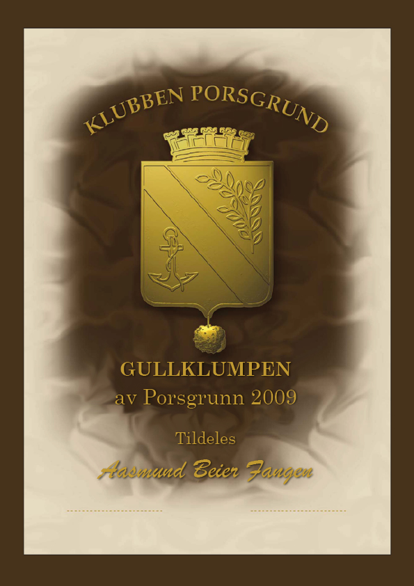 Aasmund Beier Fangen fikk Gullklumpen av Porsgrunn for sin utrettelige innsats for Museene i Porsgrunn. Han står på hele tiden, er svært kunnskapsrik og hjelper alle som har interesse byen og bygninger her.